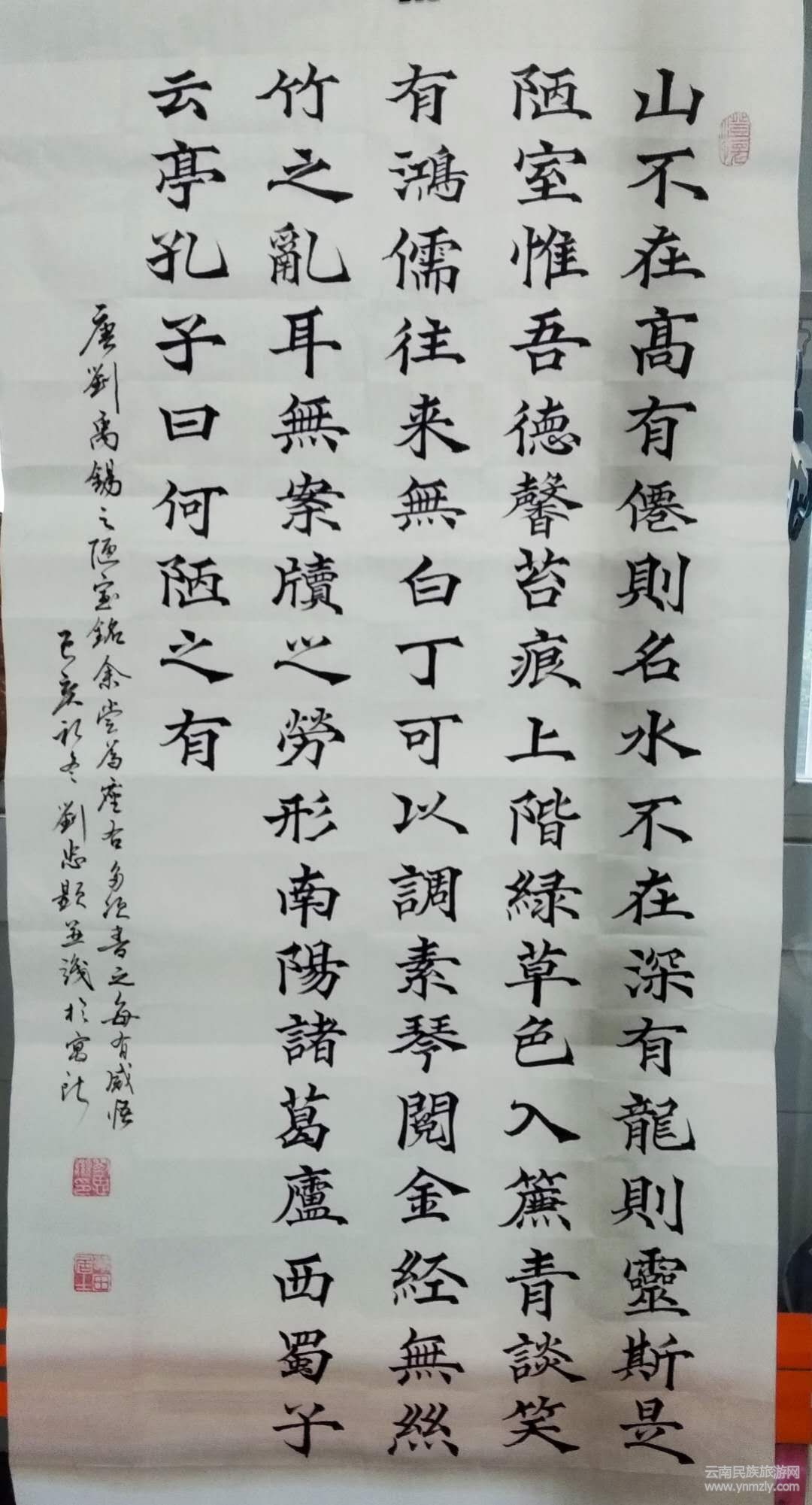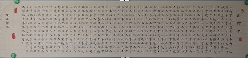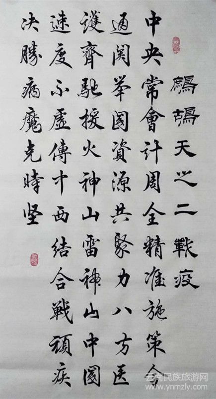 劉忠顯先生楷書結合《九成宮碑》及當代田英章老師筆法、結構,又適當融入柳、趙及碑、隸特點,崇尚嚴謹、規(guī)范、流暢的書風;行草在文革期間曾臨摹毛體,頗受其影響;小楷臨摹文征明《琴賦》,頗有心得。