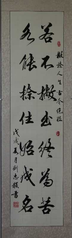 由于長期在國企石油勘探行業(yè),工作繁忙,流動性大。于2008年退休后,故很少參加社會活動。2017年至2019年,一直從事書法培訓教學,含青少年硬、軟筆,老年大學毛筆書法(楷書、行書)等。