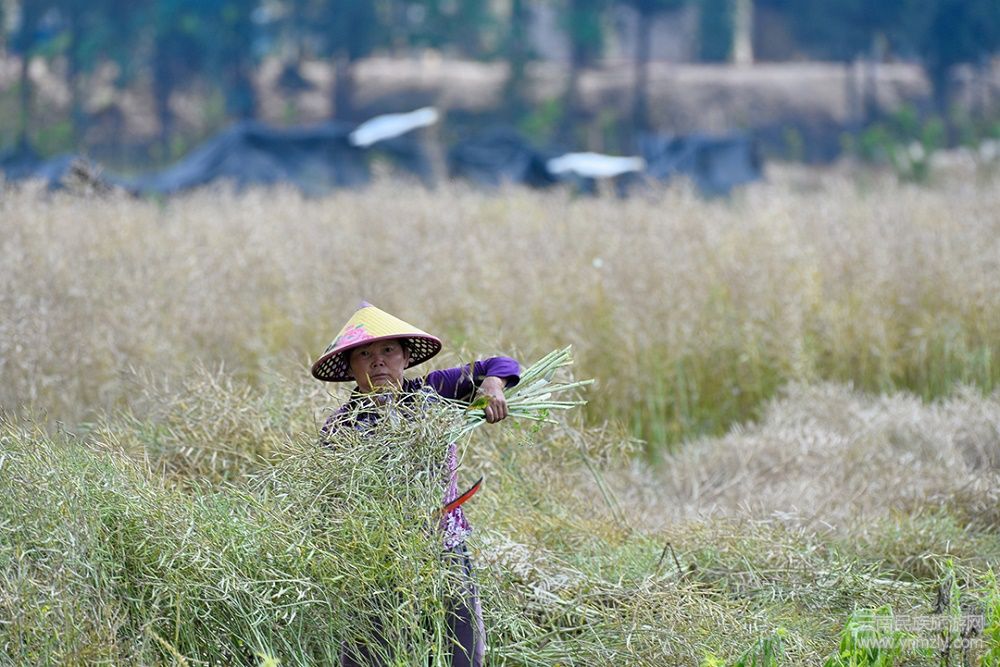 在右甸壩的農(nóng)田里,隨處一看便能看到許多揉菜籽的人,主要以中老年女性為主。她們有的在小心地將結(jié)滿莢的沒菜割下,堆在田間;有的拿著一根小棍子,輕輕地敲打脫粒;有的用手輕輕地抖動(dòng)著敲打過的莢和稈,讓菜籽全部抖落在事先墊好的塑料布上面。每一個(gè)動(dòng)作都那么認(rèn)真、那么輕柔,仿佛擔(dān)心一不小心就驚醒了沉睡的菜籽一般。