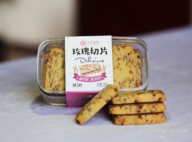 4、玫瑰切片/曲奇餅干:優(yōu)選云南高原富硒有機(jī)重瓣紅玫瑰鮮花瓣、優(yōu)質(zhì)進(jìn)口發(fā)酵奶油精心制作,其芳香濃郁,酥脆營養(yǎng),給您帶來一份源自高原玫瑰谷的清甜問候。