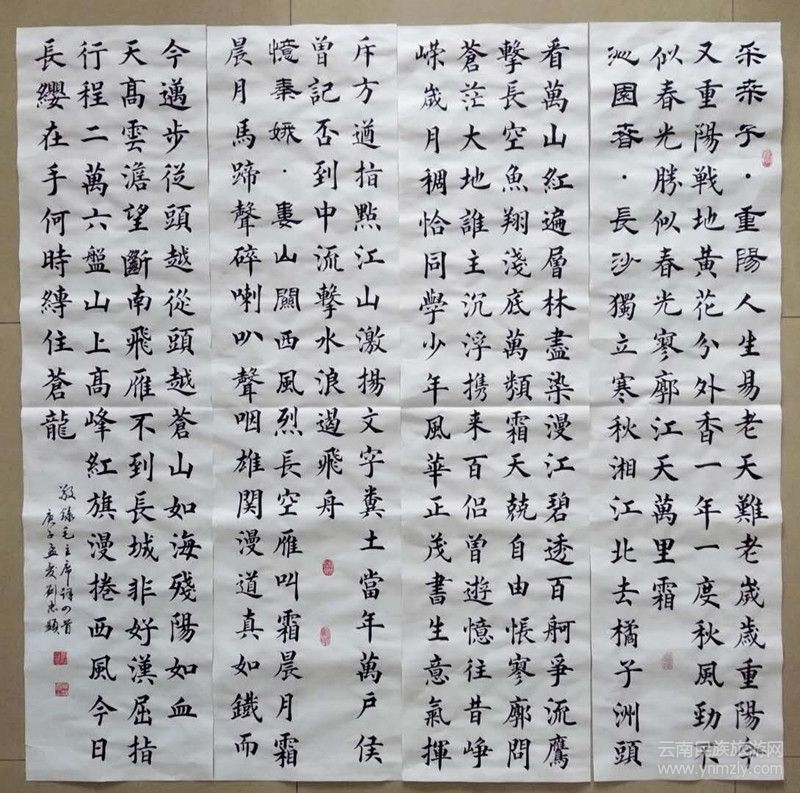 劉忠顯先生楷書(shū)結(jié)合《九成宮碑》及當(dāng)代田英章老師筆法、結(jié)構(gòu),又適當(dāng)融入柳、趙及碑、隸特點(diǎn),崇尚嚴(yán)謹(jǐn)、規(guī)范、流暢的書(shū)風(fēng);行草在文革期間曾臨摹毛體,頗受其影響;小楷臨摹文征明《琴賦》,頗有心得。
