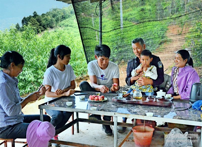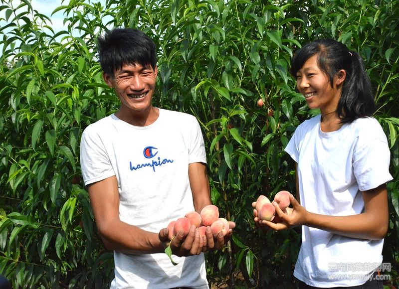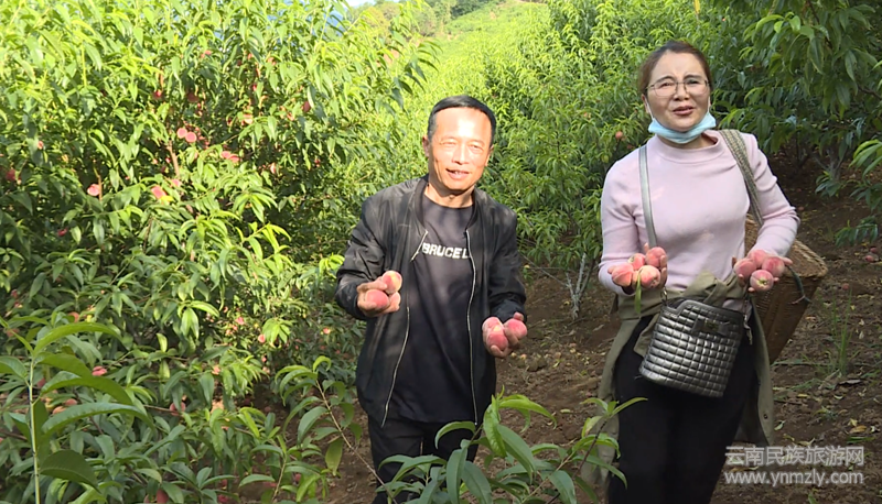 漭正旺的桃園位于耈街鄉(xiāng)新廠村上平村民小組瀾滄江東岸,距離因小灣電站下閘蓄水形成的高峽平湖僅有四百多米。桃子成熟季節(jié),江邊桃園郁郁蔥蔥,樹上紅桃鮮美可愛。鮮甜的桃子、美麗的風(fēng)景,各地游客慕名前來休閑旅游、體驗(yàn)采摘的快樂。