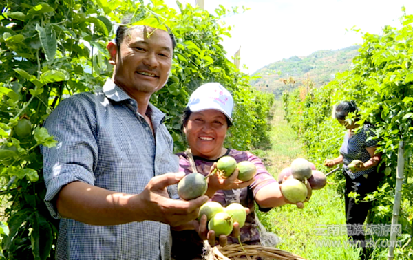 子堂村位于珠街鄉(xiāng)北部,距鄉(xiāng)集鎮(zhèn)17.5公里,最低海拔1240米,最高海拔1850米,年平均氣溫23℃,年平均降水量520毫米。土地資源豐富,土壤疏松性好,光照和溫度充足,具有百香果產(chǎn)業(yè)發(fā)展的優(yōu)越自然環(huán)境。張躍宏是子堂村帶頭發(fā)展百香果產(chǎn)業(yè)的第一人,種植百香果150多畝。今年,張躍宏的百香果長勢喜人,豐收在望。“我是子堂村第一個種植百香果的人,總種植面積150畝,去年收入在10萬左右,今年百香果長勢比較好,預計收入180萬左右。在我的果園里,有5名長期務工人員,12名短期打工,解決了農(nóng)村長期就業(yè)務工問題,在我的帶動下,周邊有8戶開始種植百香果。”張躍宏說。