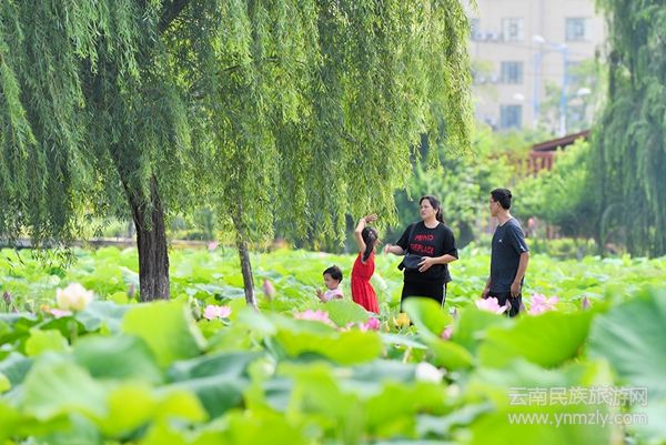 因?yàn)橐惶梁苫ǎS多人把休閑時(shí)光花在了荷塘,讓這里有了一場(chǎng)夏天里最美的聚會(huì)。認(rèn)識(shí)的不認(rèn)識(shí)的人因荷而“藕遇”,彼此打一聲招呼,互相給一個(gè)微笑后,又各自以自己的方式,看荷、拍荷、想荷,雖目標(biāo)相同卻又自得其樂(lè),互不影響。