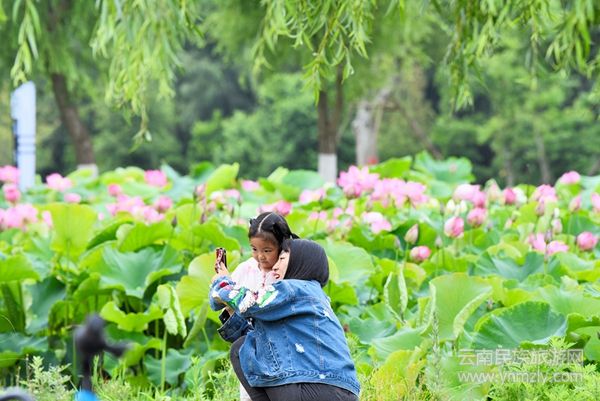昌寧的荷花,不僅僅在當(dāng)?shù)赜杏绊?,一些周邊縣份的人,也會(huì)慕名前來(lái),用半天時(shí)間看看花,然后在昌寧吃一頓飯。這,應(yīng)該是一種最愜意的旅游,實(shí)實(shí)在在地把眼前的茍且活成詩(shī)和遠(yuǎn)方。端午節(jié)上午,荷塘邊來(lái)了一群身著民族服裝說(shuō)著民族語(yǔ)言的人,別看她們年紀(jì)都不小了,但拍花、自拍、互拍卻樣樣都來(lái),每一個(gè)人的臉上都樂(lè)樂(lè)呵呵,玩嗨了還放起音樂(lè)跳起舞唱起歌,在盛開的荷花的映襯下,盡情揮灑心中的快樂(lè)。