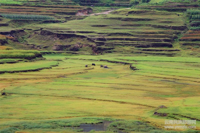 其實(shí),水庫范圍內(nèi)的土地大部分已經(jīng)被征收,只是勤勞的農(nóng)民,怎么忍心眼睜睜地看著這樣肥沃的土地被白白地荒廢掉呢。于是,根據(jù)茄子山水庫蓄水、放水的規(guī)律,蚌渺的農(nóng)民形成了一種獨(dú)特的耕作方式。二月,湖水剛剛退下去,被湖水淹沒的田地一露出來,農(nóng)人就忙著種上了各種適合湖水漲落的時(shí)令莊稼。最低的地方種上生長周期較短,成熟較早的苦蕎;往上一點(diǎn)種上生長周期稍長的玉米和洋芋;湖水不能淹到的地方照常種上水稻。到了八、九月份,湖水一上漲,農(nóng)人也就忙著搶收莊稼。就這樣,每年蚌渺湖都會(huì)上演滄海桑田的變化。正因?yàn)榘雒旌乔炎由剿畮斓难苌?。所以,形成了人與湖和諧共榮的獨(dú)特景象。