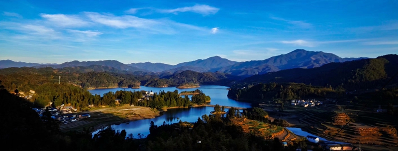 走在湖邊,我不由得羨慕起住在湖邊的蚌渺人來。他們每天都能夠在畫一樣的美景里勞作生息,早晨推開門窗,迎進(jìn)來是滿眼的美景;晚上關(guān)上門窗,送走的是一湖的星光。我想,能在這樣的地方生活一輩子,大概就是古代寄情山水的隱士們追求的隱逸生活吧。這不,陶翁正從對(duì)面牽牛荷鋤悠然走來;湖中緩緩劃著竹筏而來的那對(duì)夫婦,不就是范蠡和西施嗎。(龍陵縣委宣傳部)