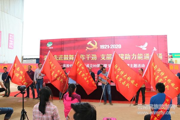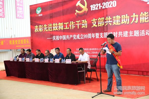 云南民族旅游網(wǎng)訊 (邵宗福) 7月1日,在紀(jì)念建黨99周年之際,武倘尋公司黨支部聯(lián)合公建五公司第三黨支部、云嶺路面分公司第一黨支部,在施工現(xiàn)場(chǎng)開展慶祝中國(guó)共產(chǎn)黨成立99周年暨支部結(jié)對(duì)共建主題活動(dòng),助推我省高速公路“能通全通”工程建設(shè)。