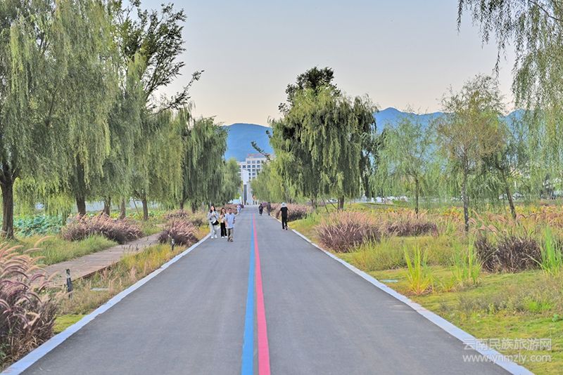 上游的是濕地,下游是田野。星河田野里,花期正盛的粉黛亂子草將昌寧的“秋”裝點(diǎn)得更加浪漫了。晚飯后,或奔跑、或漫步于健身步道的人們都會(huì)驚艷于這一團(tuán)團(tuán)“粉色云霧”而停歇片刻,競(jìng)相打卡拍照。