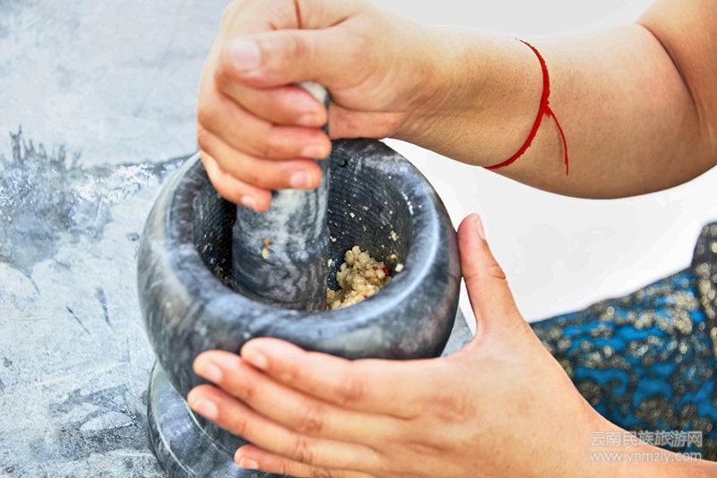 還有一種農(nóng)村土美食叫核桃鹽,做法很簡單,就是用干核桃仁和食鹽放在一起,用鹽臼舂細(xì),舂出來的核桃鹽,拌在冷飯里,是剛放學(xué)回家的孩子的最愛。如果把小鹽塊放入火里燒紅后舂,吃起來更是香得要把“后腦包蒙起來”。