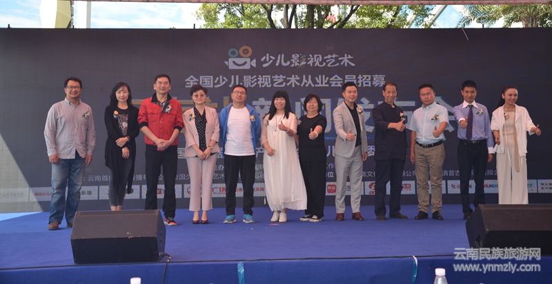 出席儀式的嘉賓評(píng)委們上臺(tái)觸摸大屏幕上的水晶球,這標(biāo)志著全國(guó)少兒影視藝術(shù)從業(yè)會(huì)員招募云南站正式啟動(dòng)。