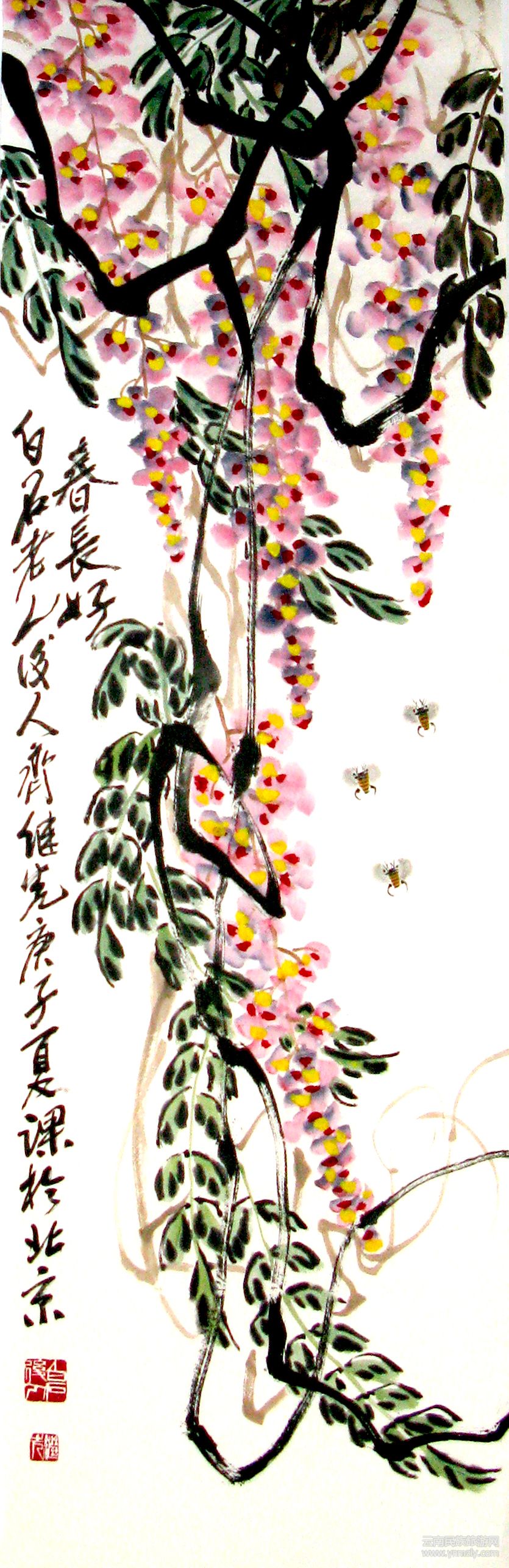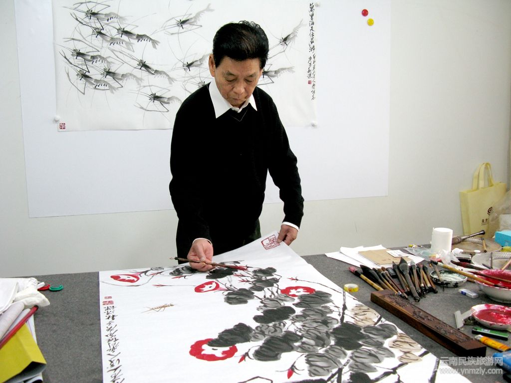 他回憶說(shuō):“2歲時(shí),尚不懂人意,只是到曾祖畫室玩耍時(shí),朦朧中見(jiàn)曾祖一天到晚都在靜悄悄的畫畫;偶爾,也會(huì)有一些買家或畫商上門,打破這靜悄悄的寧?kù)o。當(dāng)時(shí),我想曾祖了不得,畫畫就可以給我買好東西吃。也就是在這種耳濡目染的環(huán)境中,我對(duì)畫畫產(chǎn)生了濃厚興趣,也正是從哪時(shí)起,我就迷上了畫畫。更令我難忘的是,因?yàn)槲覍偈?,曾祖還特賜了一幅鼠題材的畫給我??上г?lsquo;十年文革內(nèi)亂’中,這幅畫被‘紅衛(wèi)兵’抄家時(shí)付之一炬,同時(shí)還燒掉了所有與曾祖合影的珍貴照片。這是我終生遺恨之事,所以記憶深刻。”