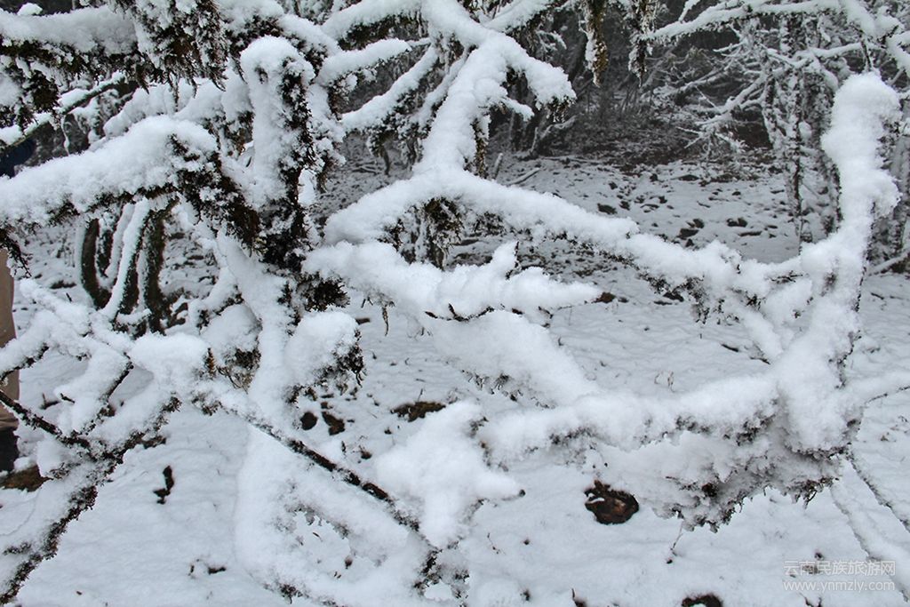 這次下雪的范圍不太大,主要集中在海拔最高的松子山及附近原始森林里。從這里的發(fā)源的水向東流向?yàn)憸娼M(jìn)入太平洋,向西則流向了怒江進(jìn)入印度洋,形成了“一山之水歸兩洋”的地貌。等這一片片雪花融化,也將化作清澈的水,流向兩個大洋。