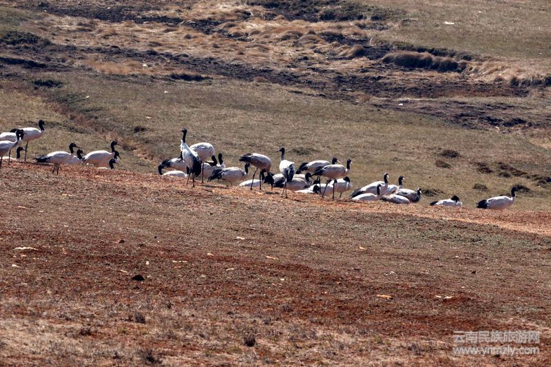 每年,在黑頸鶴到來之前,管護(hù)局都會像迎接尊貴的客人一樣準(zhǔn)備好充足的包谷、麥子等食物,在保護(hù)區(qū)種上100余畝土豆,10余畝蕎子,在黑頸鶴經(jīng)常光顧幾個(gè)水塘和沼澤放一些魚苗,用以補(bǔ)充黑頸鶴需要的蛋白質(zhì),盡快恢復(fù)它們的體力。同時(shí),常年做好濕地保護(hù)及衛(wèi)生清理工作,以防止黑頸鶴誤食。