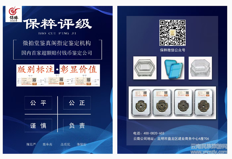 云南保粹鑒定咨詢服務(wù)有限公司總經(jīng)理江朝輝表示,保粹錢幣評級是國內(nèi)首家超額賠付錢幣鑒定評級機(jī)構(gòu),成立六年多來,去偽存真,明辨真假,全心全意為廣大收藏愛好者、泉商服務(wù),致力于中國古錢幣文化宣傳與推廣。多年來,公司總部及各分公司、事業(yè)部,利用團(tuán)隊專業(yè)的鑒定評級能力,為泉友保駕護(hù)航,已為廣大錢幣收藏愛好者、泉商鑒定評級古錢、機(jī)制幣、銀元銀錠超過百萬枚,品牌影響力、錢幣評級量均穩(wěn)居行業(yè)前列。
