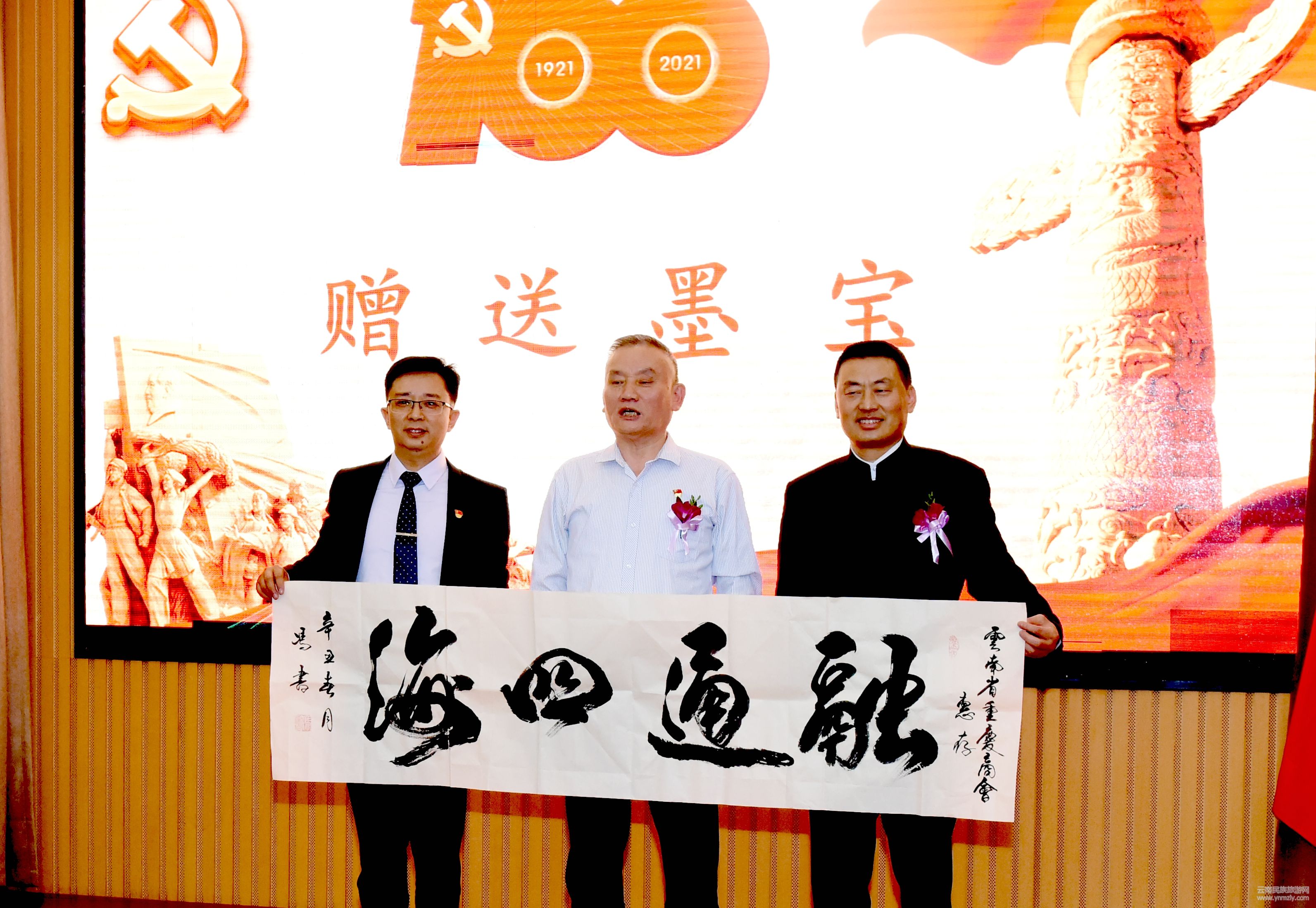 會后,馮書記為國家國防科工局《中國軍轉(zhuǎn)民》雜志社、《中國軍轉(zhuǎn)民》信息網(wǎng)和云南省重慶商會贈送親筆墨寶,分別為“軍民一家人”和“融通四海”。