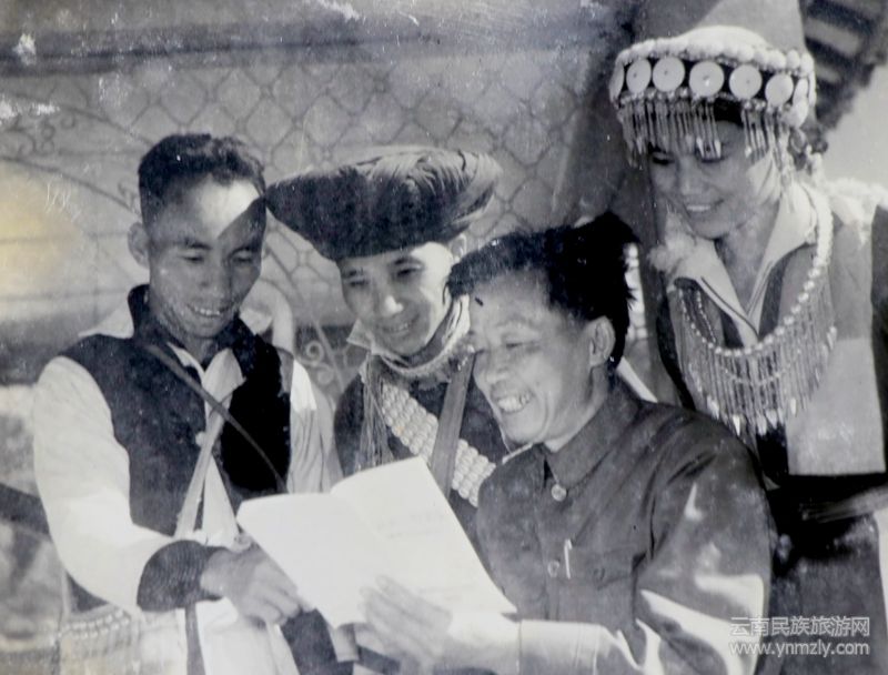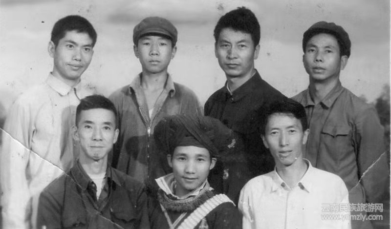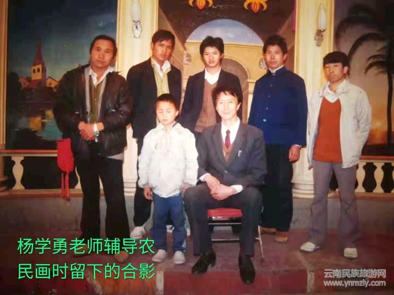 1979年9月騰沖縣文化館舉辦農(nóng)民畫創(chuàng)作班紀(jì)念留影(前排左一張德祥老師,右一楊學(xué)勇老師)