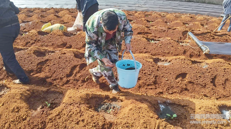 比賽在綱紀(jì)村委會化香箐村進行,現(xiàn)在正值煙苗移栽時節(jié),一盤盤培育好的煙苗整齊健壯、根系發(fā)達、長勢清秀,展現(xiàn)出旺盛的生命力,昭示著對今年的好收成和村民的好日子的美好期盼。參賽選手們來到田間,各組選取了一垅煙墑,迅速展開身手,栽苗、施肥、澆水、覆土、覆膜,一氣呵成。每組同樣數(shù)量的煙塘,由農(nóng)業(yè)技術(shù)員在旁監(jiān)督,先移栽完畢的隊伍獲勝。只見他們行動利索、穩(wěn)中求勝,競爭異常激烈。