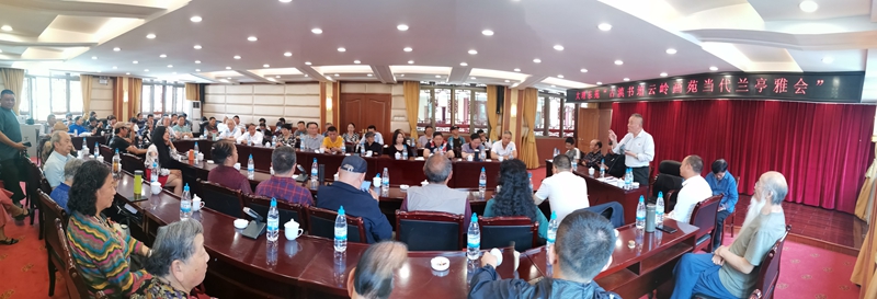 當(dāng)天的書畫藝術(shù)聯(lián)誼交流活動(dòng)座談會(huì)由趙寒院長主持,馮書老師做主旨發(fā)言,他說,首先感謝云南民族畫院以及其青年畫院、國際分院,大理州政府駐昆辦,各位書畫家和社會(huì)各界對(duì)此次活動(dòng)大力支持。其次,此次活動(dòng)經(jīng)過精心組織、計(jì)劃和實(shí)施,現(xiàn)場的情況充分證明,活動(dòng)規(guī)模大、規(guī)格高、很規(guī)范,形式、內(nèi)容、效果都很好,書畫創(chuàng)意多、參與藝術(shù)家多、新生力量也多,為以優(yōu)異成績慶祝中國共產(chǎn)黨成立100周年,貢獻(xiàn)出了書畫界的力量。同時(shí),此次活動(dòng)為廣大書畫藝術(shù)家和愛好者搭建了一個(gè)很好的交流平臺(tái),進(jìn)一步彰顯了書畫藝術(shù)欣賞價(jià)值、審美價(jià)值、文化傳承價(jià)值、收藏價(jià)值、流通價(jià)值。在中國共產(chǎn)黨成立100周年之際舉辦這樣的活動(dòng),具有重大的政治意義、歷史意義、現(xiàn)實(shí)意義。我們一定要通過文化惠民、互聯(lián)網(wǎng)十兩大工程,著力推進(jìn)建設(shè)書畫藝術(shù)家交流平臺(tái)。我們一定要聽黨話、感黨恩、跟黨走,接續(xù)奮斗;要學(xué)黨史、悟思想、辦實(shí)事、開新局,以優(yōu)異成績迎接建黨100周年!