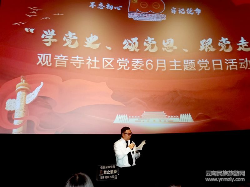 云南民族旅游網(wǎng)訊(記者尹達(dá)天 通訊員杜麗嬌)為慶祝中國(guó)共產(chǎn)黨成立100周年,重溫中國(guó)共產(chǎn)黨矢志踐行初心使命,回顧篳路藍(lán)縷奠基立業(yè)的光輝奮斗史,2021年6月11日下午,觀音寺社區(qū)聯(lián)合社區(qū)大黨委6家成員單位黨組織,90多名黨員,在吾悅廣場(chǎng)星軼影城開(kāi)展“學(xué)習(xí)百年黨史,觀看紅色電影”黨史學(xué)習(xí)教育活動(dòng)。