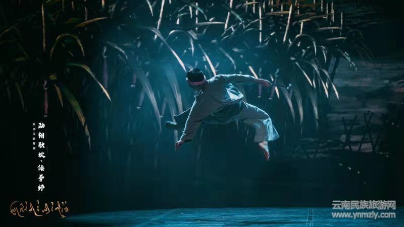 作品藝術(shù)特色突出,從形式上來看,作品選用了“舞劇”的方式,而非“舞蹈詩”的方式,這就將作品提高到了必須具備“戲劇性”的層面,因此在舞劇劇本的創(chuàng)作方面,作品嚴(yán)格遵循了戲劇劇本創(chuàng)作的規(guī)律,呈現(xiàn)了一個(gè)非常完整的、具備戲劇要素的故事,劇情充滿戲劇矛盾和張力、劇中人物形象鮮明飽滿、故事結(jié)構(gòu)豐滿完整。其次,在整個(gè)作品中,將幾乎所有耿馬非物質(zhì)文化遺產(chǎn)項(xiàng)目以及當(dāng)?shù)靥厣褡逦幕┎迤渲?,包括女?chuàng)拳、傣族剪紙、傣繡、傣族漆器、傣族造紙術(shù)、康郎文化、開門節(jié)民俗文化、馬鹿舞、緊那羅舞、以及耿馬當(dāng)?shù)馗髅褡逄厣幕c舞蹈等等。用一條線索、一個(gè)故事,串起了耿馬民族文化特色。
