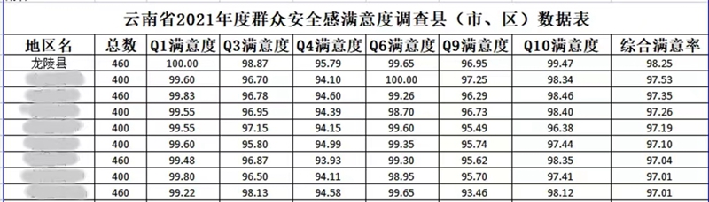 云南省2021年度群眾安全感滿(mǎn)意度調(diào)查縣(市、區(qū))數(shù)據(jù)表
