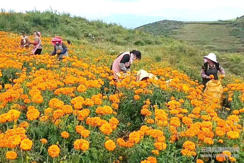 萬(wàn)壽菊是一種特色經(jīng)濟(jì)作物,它所提煉出的葉黃素被廣泛的運(yùn)用于食品、醫(yī)藥、化妝品和動(dòng)物飼料。同時(shí),萬(wàn)壽菊花期長(zhǎng),與傳統(tǒng)經(jīng)濟(jì)作物相比,成活率高、田間管理簡(jiǎn)單,產(chǎn)量高、收入可觀,集觀賞、藥用、環(huán)保等經(jīng)濟(jì)價(jià)值于一身,故有“軟黃金”之稱。