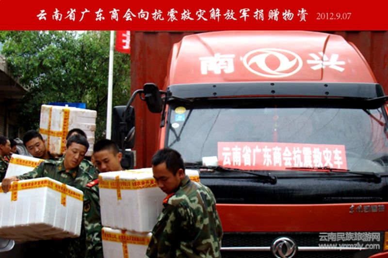 軍愛民,民擁軍,軍民團(tuán)結(jié)如一人。2012年云南昭通彝良“907地震”發(fā)生以后,駐滇解放軍和幾千名武警官兵,他們廢寢忘食,不顧個(gè)人安危,急行軍奔赴彝良抗震救災(zāi)第一線,彰顯了人民子弟兵的英雄本色。那時(shí)候,聽說災(zāi)區(qū)軍民急需蔬菜,廣東商會就立刻與副會長羅松南商量,組織了價(jià)值幾十萬的供港蔬菜,改為無償捐贈到昭通地震災(zāi)區(qū),直接將蔬菜送到抗震救災(zāi)的官兵那里,解決官兵們的后顧之憂。在場的抗震救災(zāi)副指揮、武警云南總隊(duì)副政委孫國大校說:“危難時(shí)刻見真情,廣東商會真棒!”