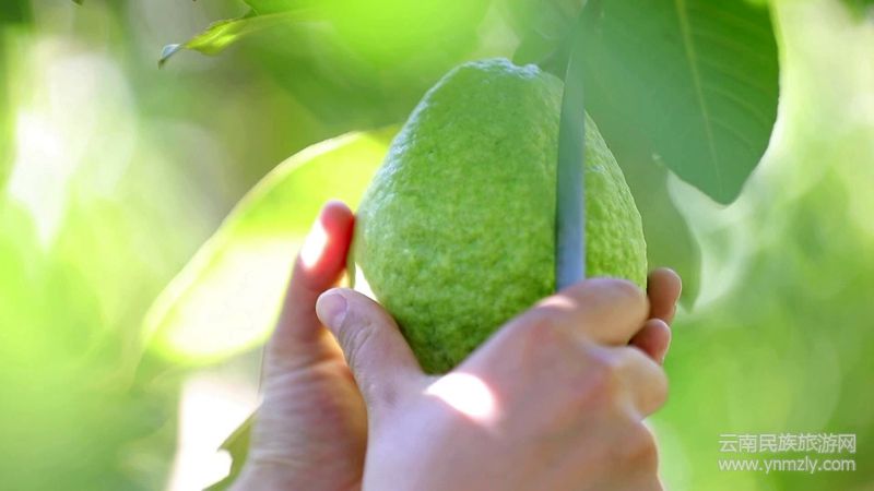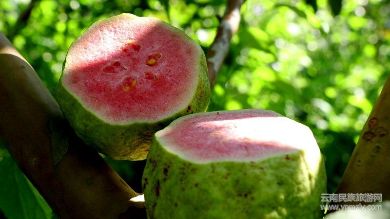 在擺榔鄉(xiāng)尖山村小龍?zhí)兑唤M果農(nóng)李天楊家的番石榴地里,果香沁人心脾。茂密的枝葉間,外皮翠綠、碩大飽滿的番石榴綴滿枝頭,甚是惹人喜愛(ài)。用刀將番石榴劃開(kāi),里面的果肉呈粉紅色,品嘗起來(lái)口感清甜爽脆。李天楊正手持剪刀,小心翼翼地采摘著成熟的番石榴,隨著“咔嚓”一聲,又大又圓的番石榴便落入手中,豐收的喜悅溢于言表。