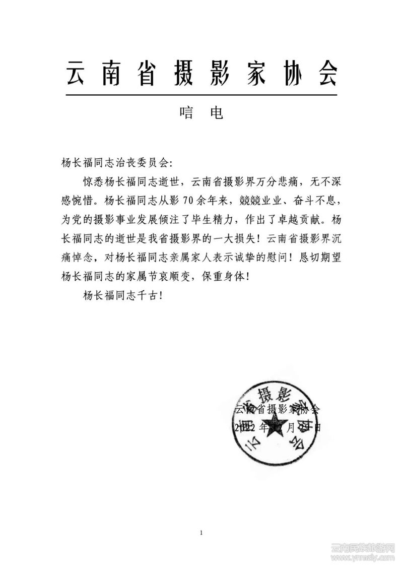 今天,我們沉痛悼念楊長(zhǎng)福先生,他求真務(wù)實(shí)、開拓進(jìn)取,競(jìng)競(jìng)業(yè)業(yè)、謙虛謹(jǐn)慎,寬以待人、嚴(yán)以律己、為人師表,用畢生的精力為發(fā)展和繁榮昆明市的攝影文化事業(yè)做出了不懈的努力和積極貢獻(xiàn)。楊長(zhǎng)福先生一路走好。