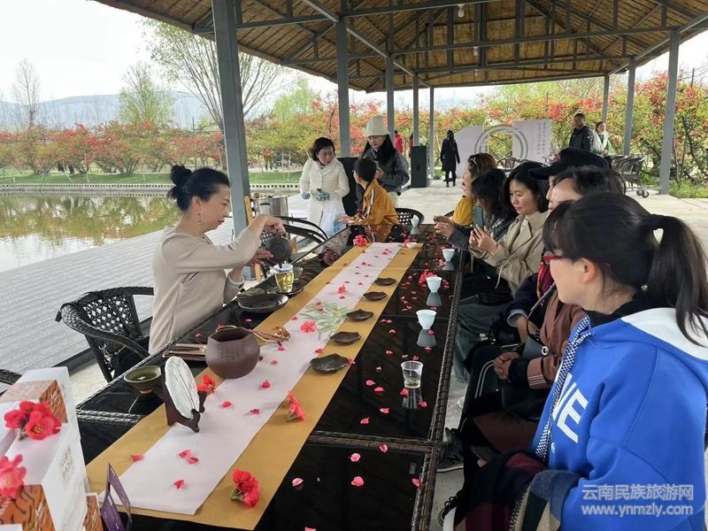 為配合“霞客春風(fēng)·穿越時(shí)空”活動(dòng),大理州海外旅行社在3月5日,第一個(gè)跟著徐霞客游洱源百人團(tuán)順利發(fā)團(tuán);3月7日,兩個(gè)百人團(tuán)順利進(jìn)行中;客人們?cè)谲氡毯伎蜁豪镔p花品茶,玩得不亦樂(lè)乎。