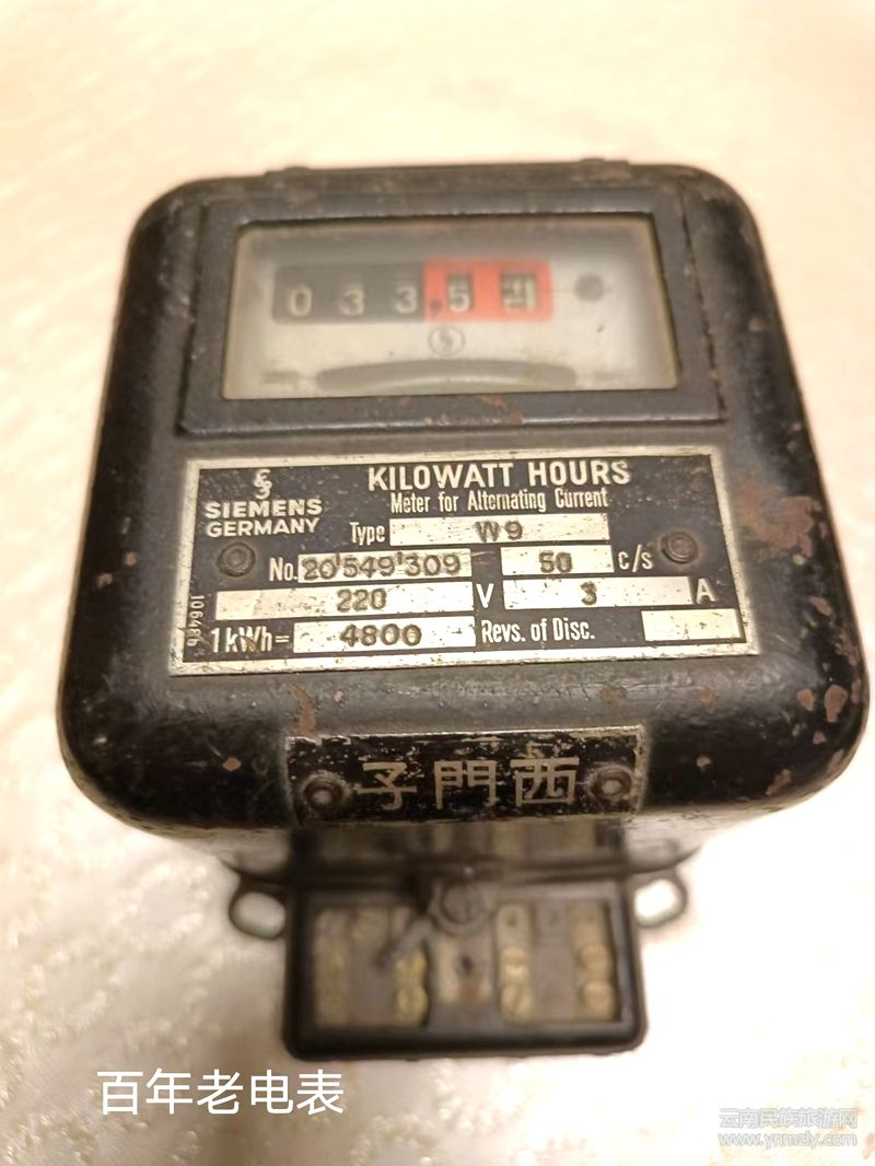 有一次,在南屏街的古玩城,我見(jiàn)到一塊外國(guó)電表,店主在電表旁邊標(biāo)注,說(shuō)“這是一塊德國(guó)制造禪臣牌交流電度表,大清光緒年末由德國(guó)制造出口中國(guó),昆明是全國(guó)較早使用交流電的地方,中國(guó)第一座水電站,石龍壩水電站,現(xiàn)已成為全國(guó)重點(diǎn)文物保護(hù)單位,該電表體積小,水晶玻璃窗框,至今運(yùn)行正常,內(nèi)部結(jié)構(gòu),可靠性能等指標(biāo),超過(guò)目前中國(guó)制造的電表,(百年回顧)”,我見(jiàn)到后,當(dāng)即把它買(mǎi)了下來(lái),這是我收藏的第一塊電表。現(xiàn)在,在我收藏的十多塊電表中,既有國(guó)外的,也有國(guó)內(nèi)早期制造的。