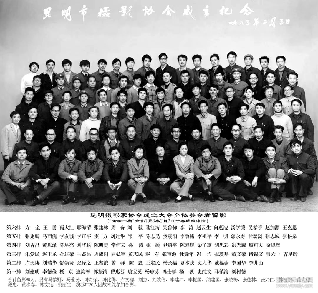 1983年2月3日昆明攝影協(xié)會(huì)成立合影照:笫四排左三為陳星亮,右七為本文作者尹紹平