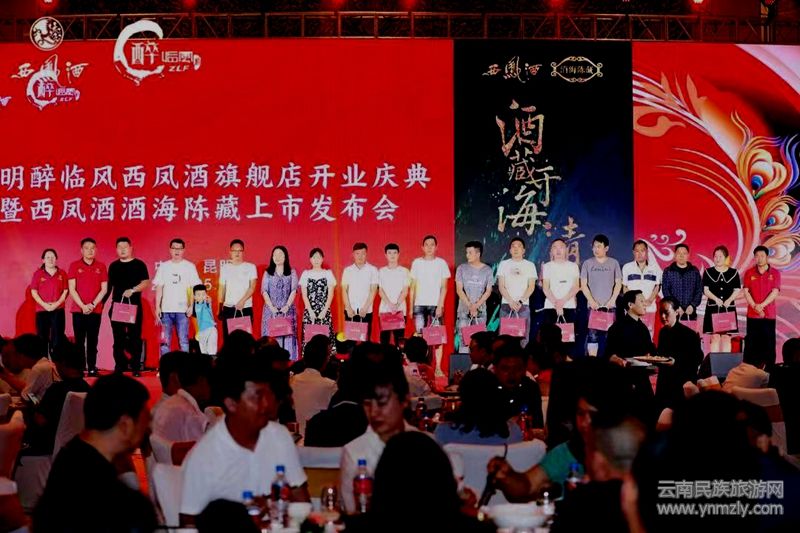 本網(wǎng)訊(尹紹平)2023年5月31日,昆明醉臨風(fēng)貿(mào)易有限公司舉辦西鳳酒旗艦店開業(yè)慶典暨西鳳酒.酒海陳藏上市發(fā)布會答謝晚宴!參加晚宴的嘉賓有:陜西西鳳酒營銷管理有限公司桂瓊分公司總經(jīng)理肖玉軍、昆明醉臨風(fēng)貿(mào)易公司董事長蒙禮秘、昆明醉臨風(fēng)酒業(yè)有限公司總經(jīng)理胡穎、昆明酒類行業(yè)協(xié)會秘書長尹俊強。還有來自昆明市場的酒水經(jīng)銷商、社會名流、商界精英400余人,參加主辦方的現(xiàn)場抽獎活動、觀看精彩的文藝表演、品鑒西鳳酒醇香美酒。