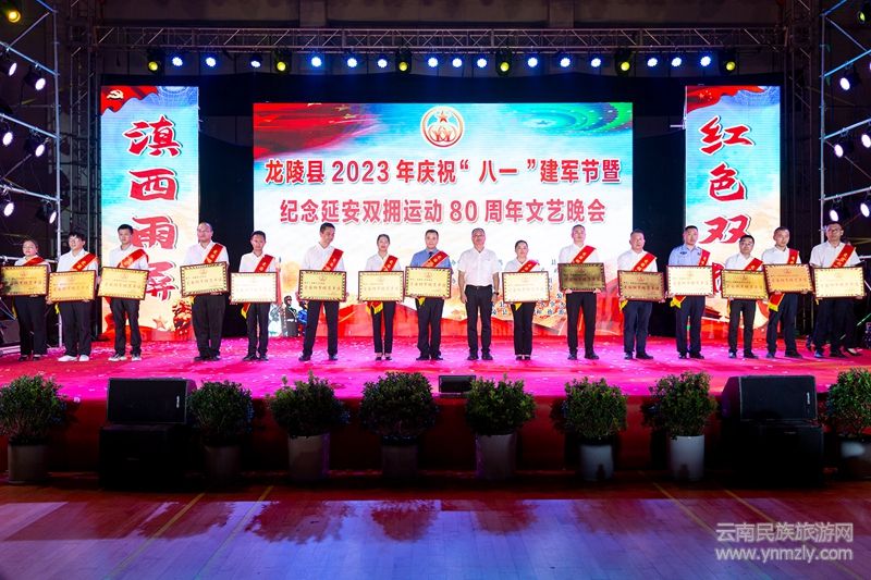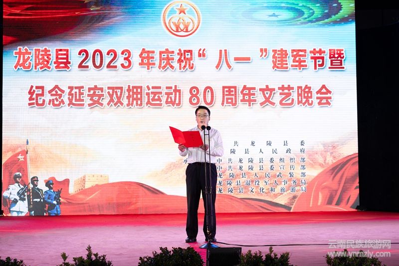本網訊:為在全社會營造人人關心國防、崇尚軍人的濃郁氛圍,7月31日晚,龍陵縣2023年慶祝“八一”建軍節(jié)暨紀念延安雙擁運動80周年文藝晚會在體育中心如期進行,龍陵縣黨政軍警民代表共計1000多人歡聚一堂、共話魚水歡歌。