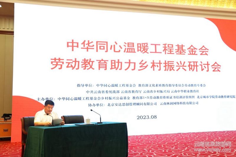 2023年8月13日至14日,中華同心溫暖工程基金會和教育部1+X勞動教育資質(zhì)證書評價組織等主辦的“勞動教育助力鄉(xiāng)村振興”研討會在昆明舉行。第十二屆全國政協(xié)副主席、中華同心溫暖工程基金會理事長馬培華,云南省政協(xié)副主席、云南中華職業(yè)教育社主任高峰,中華同心溫暖工程基金會副理事長兼秘書長方乃純,中華同心溫暖工程基金會理事兼副秘書長蔣振華,云南省委統(tǒng)戰(zhàn)部副部長何長松,云南省教育廳副廳長李光洪,云南省鄉(xiāng)村振興局副局長寧亞寧,中國成人教育協(xié)會會長、原中南大學(xué)黨委書記高文兵等相關(guān)領(lǐng)導(dǎo)出席研討會。勞動教育領(lǐng)域的國內(nèi)領(lǐng)銜專家學(xué)者做了學(xué)術(shù)報告。