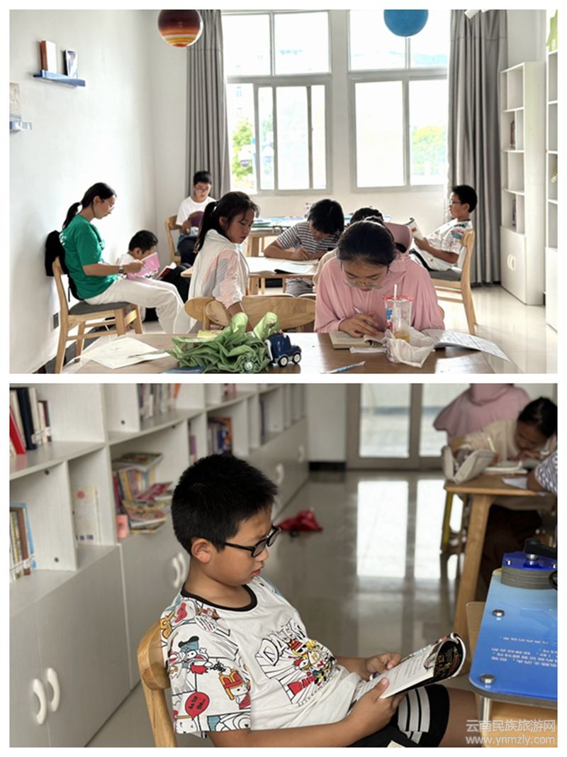 利用農(nóng)家書屋、社區(qū)圖書室等資源,通過志愿者領(lǐng)讀、作講解,孩子們跟讀、談感悟的方式,讓孩子在閱讀里暢游世界,探索宇宙,享受閱讀帶來的樂趣,讓學(xué)生在暑假中“充電”不停,學(xué)習(xí)不止。