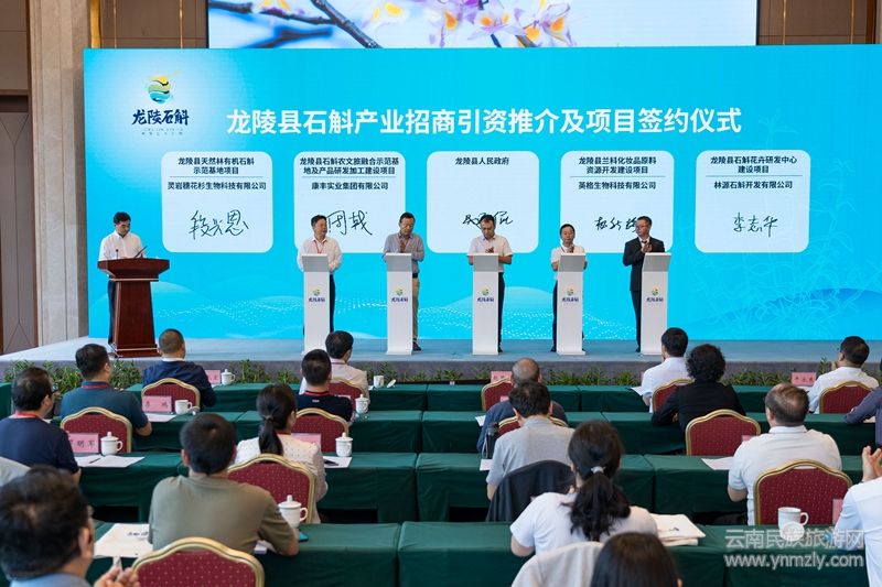 大會(huì)還舉行了龍陵縣石斛領(lǐng)域人才結(jié)對(duì)共建儀式、人才智力簽約(聘用)儀式和龍陵縣省委、市委、縣委聯(lián)系專家金融授信儀式、“蘭科化妝品原料資源開發(fā)共建中心”“石斛盆花資源開發(fā)利用共建中心”授牌儀式、“云南省農(nóng)業(yè)科學(xué)院鄉(xiāng)村振興示范點(diǎn)”授牌儀式、龍陵縣石斛專家委員會(huì)受聘專家聘書頒發(fā)儀式。在石斛產(chǎn)業(yè)招商引資推介及項(xiàng)目簽約儀式上,還就《龍陵縣石斛農(nóng)文旅融合示范基地及產(chǎn)品研發(fā)加工建設(shè)項(xiàng)目》《龍陵縣蘭科化妝品原料資源開發(fā)建設(shè)項(xiàng)目》《龍陵縣天然林有機(jī)石斛示范基地建設(shè)項(xiàng)目》《龍陵縣石斛花卉研發(fā)中心建設(shè)項(xiàng)目》4個(gè)項(xiàng)目進(jìn)行現(xiàn)場(chǎng)簽約。
