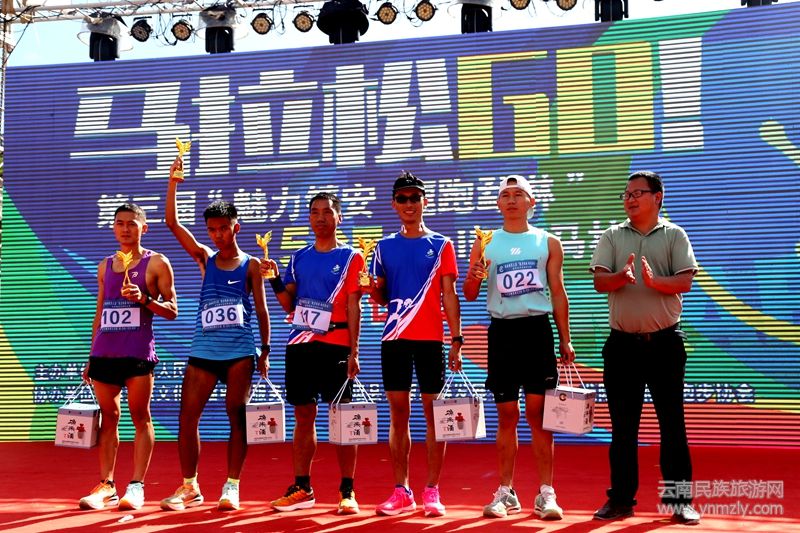 9月23日上午,第三屆“魅力鎮(zhèn)安 趣跑勐淋”迷你趣跑馬拉松率先掀開活動(dòng)序幕。比賽還未開始,參賽運(yùn)動(dòng)員早早就齊集到鎮(zhèn)北藝術(shù)田園晚會(huì)現(xiàn)場(chǎng)摩拳擦掌、躍躍欲試?;蛉宄扇合嗷ゼ佑凸膭拧⒒蛳嗷ヅ浜献龈黜?xiàng)賽前拉伸準(zhǔn)備。9時(shí)整,隨著裁判一聲哨響,男子組運(yùn)動(dòng)員、女子組運(yùn)動(dòng)員依次發(fā)起比賽,比賽中運(yùn)動(dòng)員們?nèi)缑擁\野馬你追我趕,歷時(shí)1個(gè)半小時(shí)完成比賽。