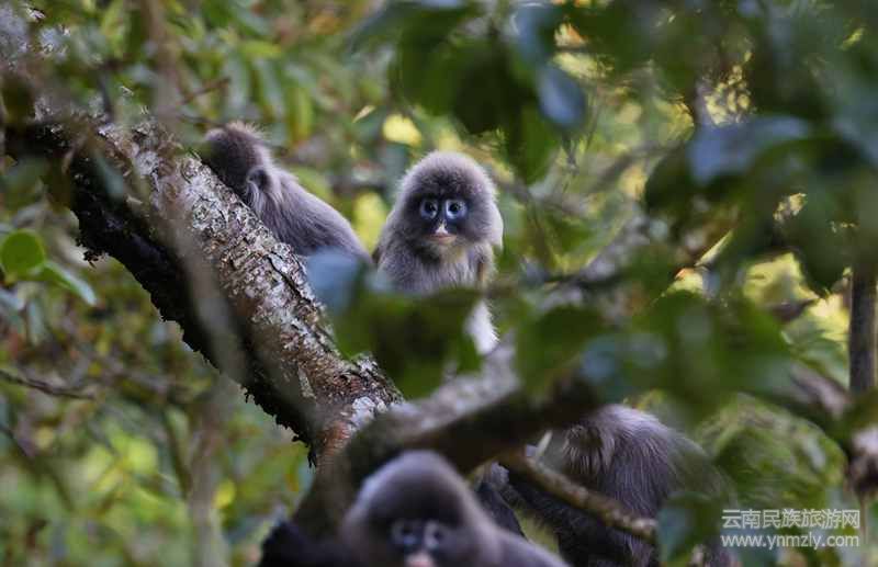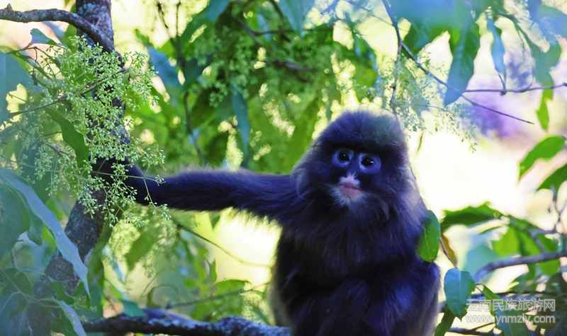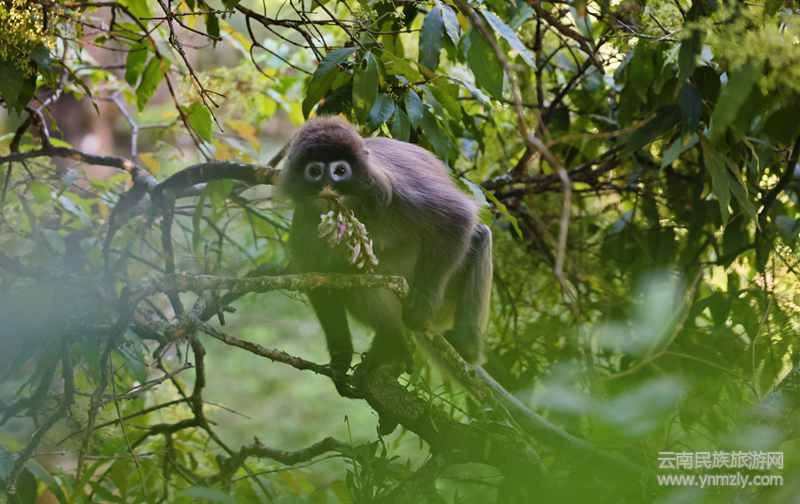 菲氏葉猴也是云南的旗艦物種和標(biāo)志性物種。其隸屬靈長目猴科葉猴屬,又名灰猴、長尾猴,在我國主要分布于云南南部。在龍陵縣主要見于小黑山保護(hù)區(qū)及其周邊區(qū)域的中山濕性常綠闊葉林。