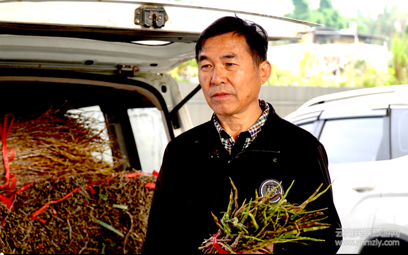 每到集市日,龍陵縣大大小小的石斛交易市場就忙碌開來,來自全國各地的客商匯聚于此,挑選自己中意的石斛鮮條、楓斗和干花。擠在人群中的浙江客商谷建來說:“龍陵的紫皮石斛品質(zhì)非常好,今年我已經(jīng)是第十五年來龍陵收購了。每年石斛上市的時候,我都過來收購200多噸的紫皮楓斗、鮮條,然后發(fā)往全國各地。”
