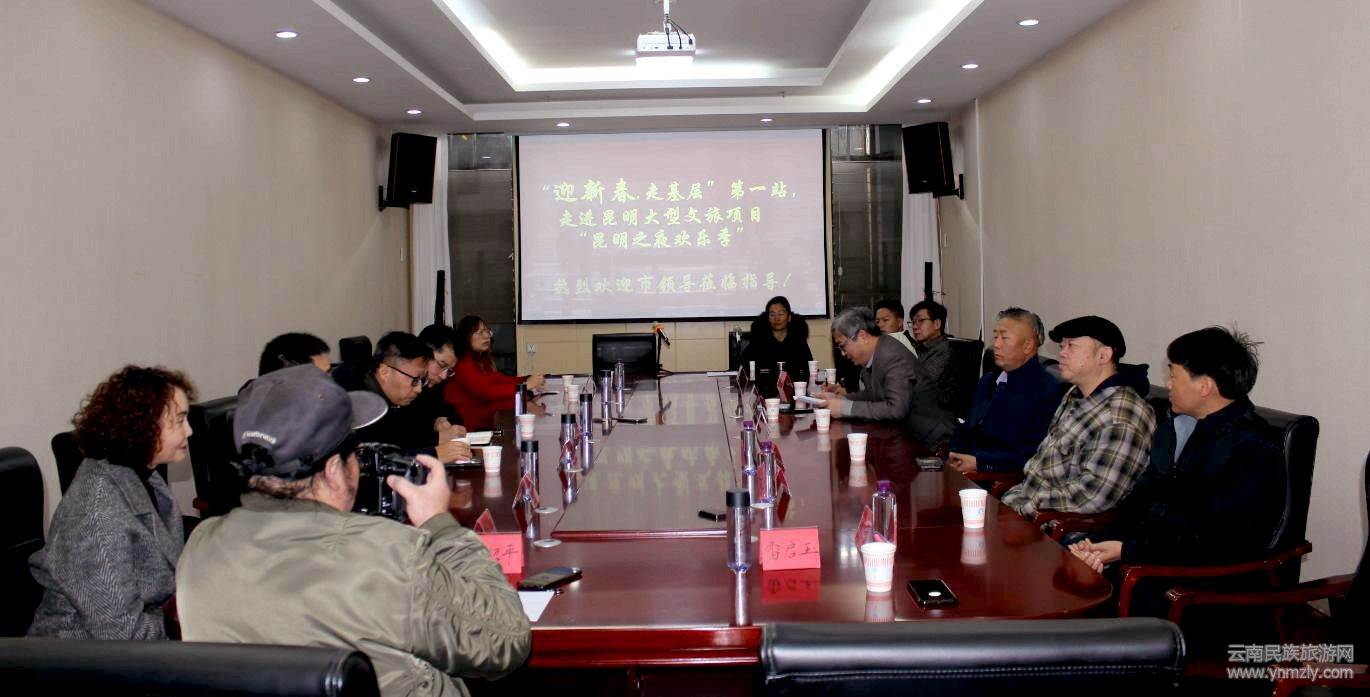 2024 年 1 月 21 日組織了首場“迎新春•走基層”活動——走進“昆明之夜歡樂季”項目。云南省、市相關(guān)職能部門領(lǐng)導(dǎo);昆明市新媒體協(xié)會秘書長張永直;五華區(qū)政府招商顧問、云南(昆明五華)國際人力資源服務(wù)產(chǎn)業(yè)園特別顧問佘萬衛(wèi);云南云上產(chǎn)業(yè)園區(qū)運營管理有限公司執(zhí)行董事陳紅星;云南云品企業(yè)孵化器有限公司總經(jīng)理楊連昆;滴灌通投資-云南財景公司合伙人楊麗華;云南省資深媒體人、攝影藝術(shù)家、云南民族旅游網(wǎng)及網(wǎng)易平臺執(zhí)行主編尹紹平;當(dāng)代文旅新媒體平臺主編雷啟玉等各界人士近 20 人參加。
