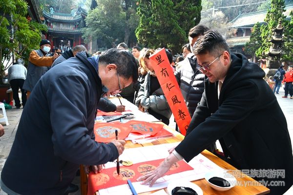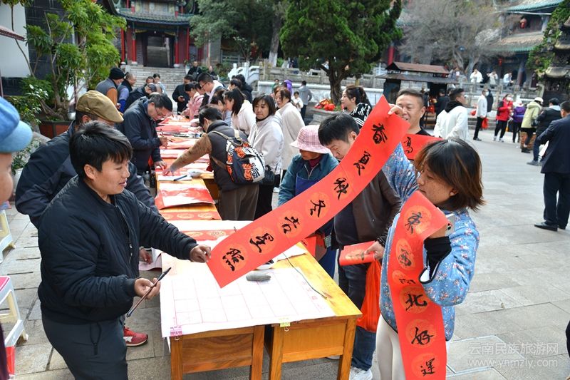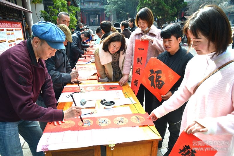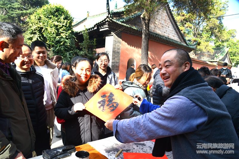據了解,來自昆明晉寧書法協會書法家志愿者組成的文化服務隊走進盤龍寺,現場為基層群眾揮毫潑墨,用充滿傳統(tǒng)文化特色的春聯和喜福表達喜迎新春的祝福,讓基層群眾精神文化生活更加豐富多彩。