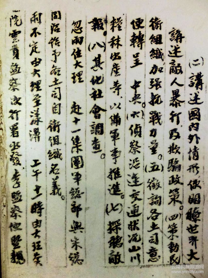 針對(duì)南甸土司署槍彈缺乏、經(jīng)費(fèi)拮據(jù)的現(xiàn)狀,尹明德說:“槍彈缺乏,如能由中央補(bǔ)助一部分,自然最好,司官的武裝力量也會(huì)因此而強(qiáng)大。然而,當(dāng)前時(shí)局維艱,全國抗戰(zhàn)處于最關(guān)鍵時(shí)刻,各方壓力都很大,各地抗戰(zhàn)都需要大量的戰(zhàn)略物資。南甸司署組訓(xùn)民眾,補(bǔ)助抗戰(zhàn),不必一定有槍彈,方能效力,如運(yùn)輸救護(hù)、傳遞情報(bào)、擔(dān)任向?qū)?,籌集糧秣等,皆需民眾幫助。”