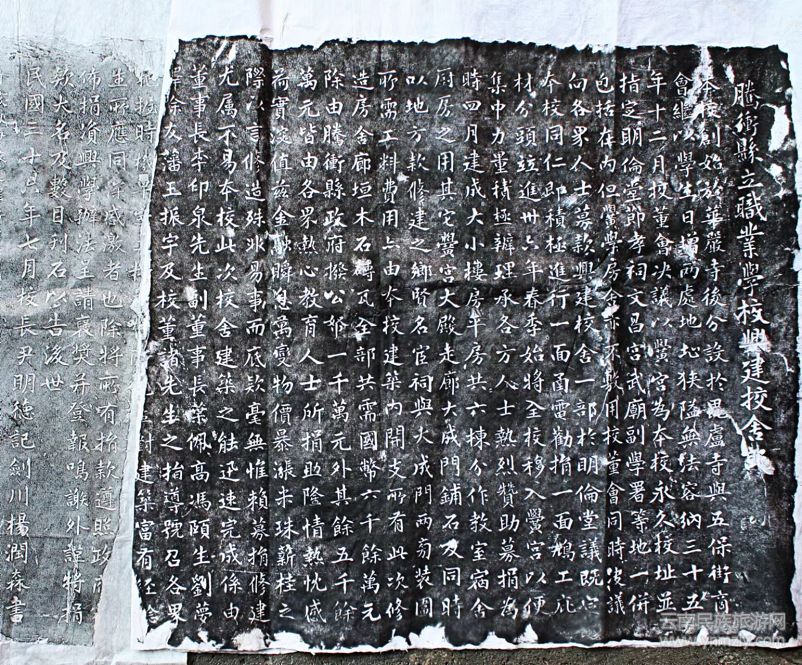 騰沖縣立職業(yè)學(xué)校興建校舍記拓片。尹明德記、張鑫教跋 (賈志偉提供)