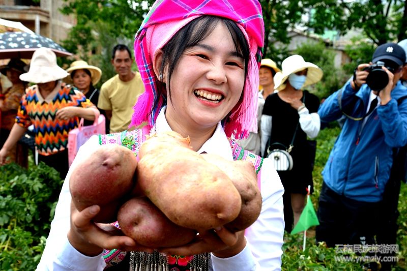 此次洋芋節(jié)活動(dòng)不僅有挖洋芋和傳統(tǒng)的文化表演,設(shè)置省級(jí)非物質(zhì)文化遺產(chǎn)“寶峰貼花”展位,還增加了青龍彝族村美術(shù)攝影展,展現(xiàn)新農(nóng)村、美麗鄉(xiāng)村建設(shè)的成效。挖洋芋活動(dòng)中,百余名游客地里揮汗如雨,大家都鉚足了勁兒,奔著“洋芋王”去。