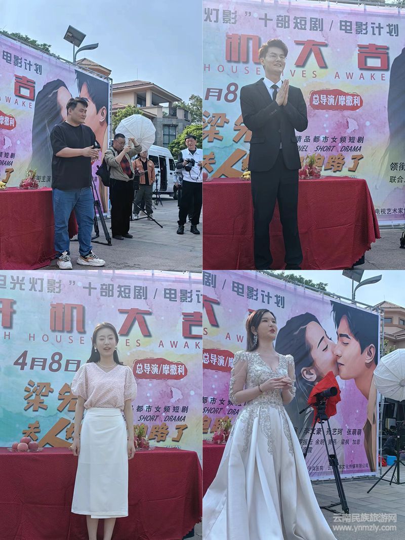 本網(wǎng)訊(文圖/張密 余迷)4月8日上午,由北京電光燈影業(yè)與云南短劇制作中心、云南猛牛影業(yè)共同發(fā)起的“電光燈影10部短劇和電影計劃”合作項目——首部短劇《梁先生,夫人她卷起跑路了》,在昆明海麗賓雅度假酒店舉行了開機儀式。