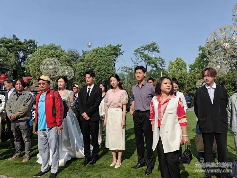 上午八點半,開機儀式在酒店天合宮一側(cè)的草坪前舉行,拍攝方和主要演員做了簡單致辭。