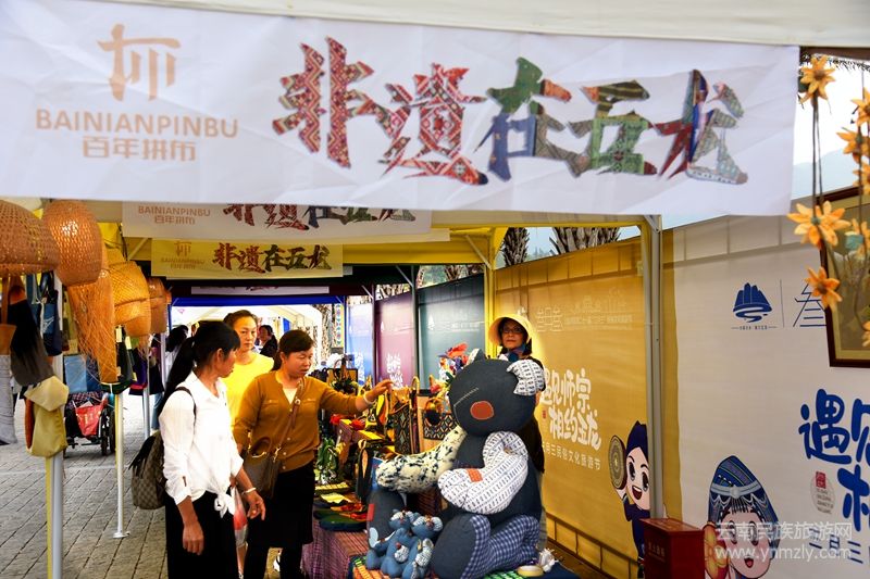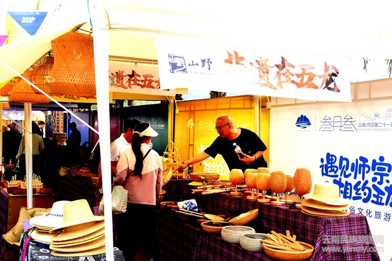 游客們相約到文創(chuàng)產品集市欣賞選購木雕工藝、竹編、壯錦、刺繡等手工技藝及民俗特色產品,見證了靈動的民俗藝術;