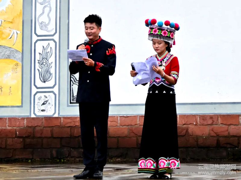 姚安歷史悠久、文化薈萃,素有“梅葛故地,花燈之鄉(xiāng),文獻名邦”的美譽。以彝族梅葛、姚安花燈、姚安壩子腔三項國家級非物質(zhì)文化遺產(chǎn)為代表的民族民間文化在全縣大部分地區(qū)均有流傳,群眾基礎(chǔ)深厚。左門是梅葛文化的發(fā)祥地之一,梅葛左門淵源流傳,是彝家兒女情感交流的重要載體。這不,臺上梅葛調(diào)演唱《放牧相約》,立即讓觀眾豎起耳朵。